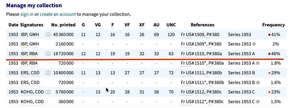 • Paper Money of the United States, Friedberg (Fr#1510, Series 1953A)