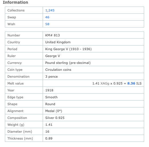 Numista (entrada: Reino Unido 3 peniques, 1918, KM# 813) — consultado el 17 de diciembre de 2025