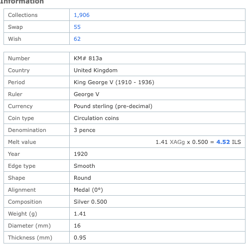 Numista (entrée : Royaume-Uni 3 pence, 1920, KM# 813a) — consulté le 17 décembre 2025