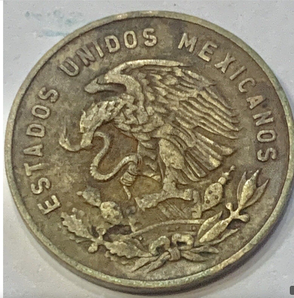The 5 Centavos coin was redesigned again in 1958. The new coin was made of brass and had a diameter of 20.5 millimeters. The new coin also featured a new design on the reverse, which depicted a small eagle clutching a snake.